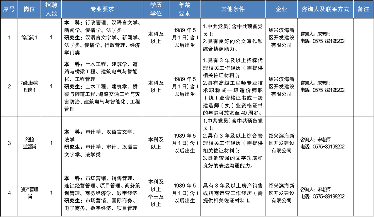 (五)新员工入职后需服从公司岗位调配,工资福利待遇按照绍兴滨海新区国有企业相关薪酬管理办法执行。未按规定时间到岗的,取消录用资格。