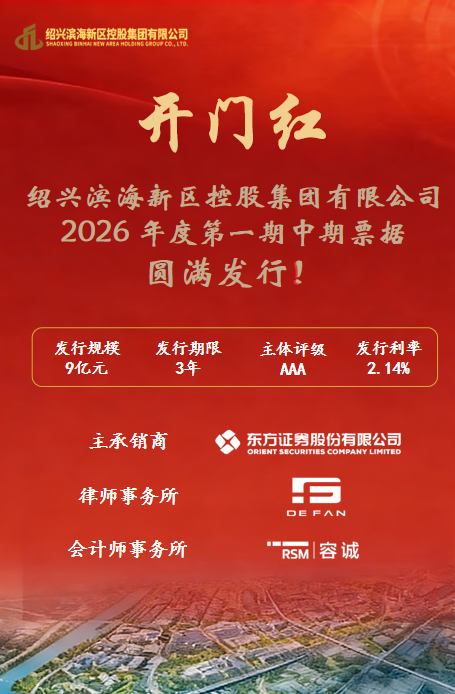 近日,滨控集团成功发行“26绍滨控股MTN001”中期票据,实现新年融资“开门红”。本期债券发行规模9亿元,票面利率2.14%,创绍兴市属国企新年债券发行利率新低。全场认购倍数达3.53倍,充分体现了资本市场对集团实力与发展前景的高度认可。